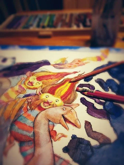 So I had to find a bigger, bolder, brighter style that preserved more of the energy of my early sketches.